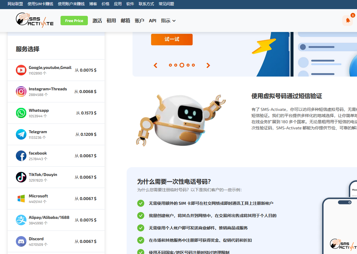 虚拟电话号码 接码平台 一次性手机号码